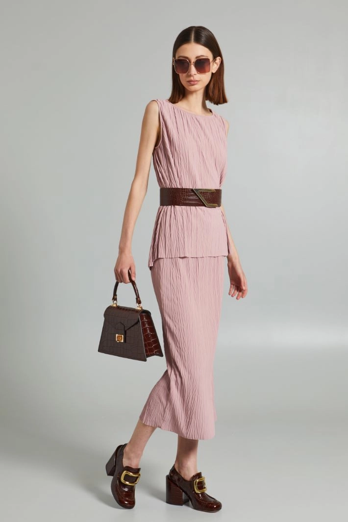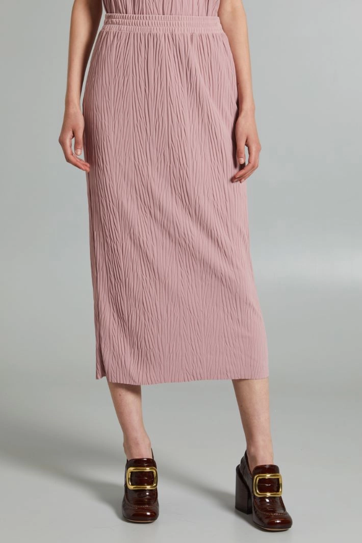 Pencil skirt in crepe jersey, with pleating and elastic insert at the waist.