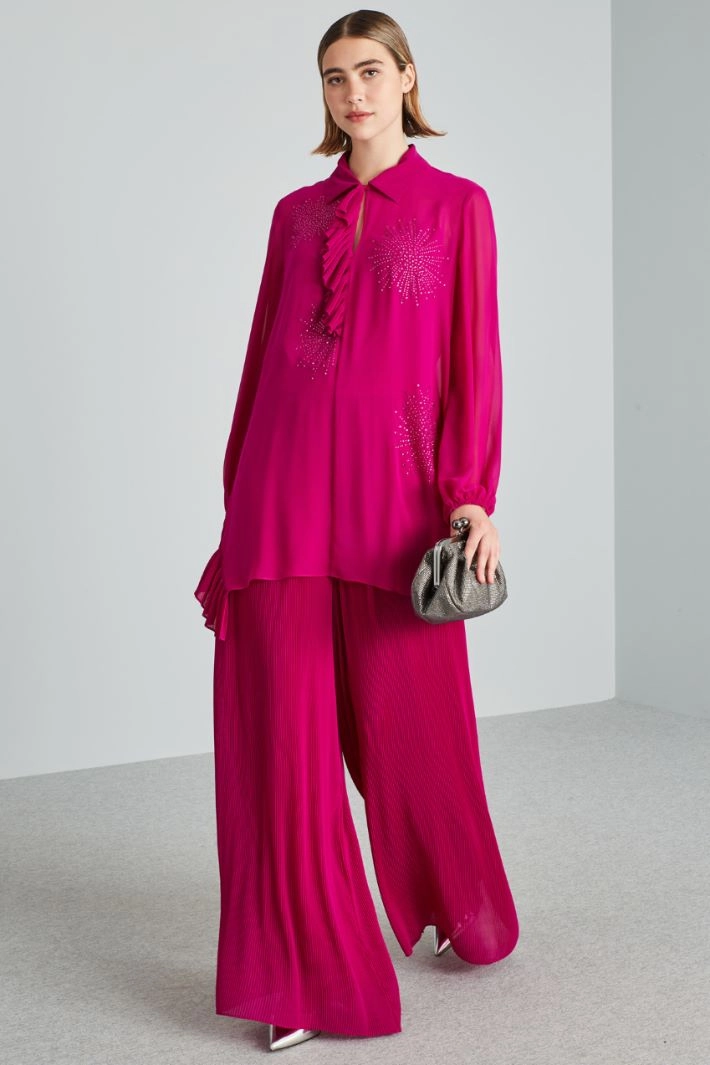 Pleated georgette trousers