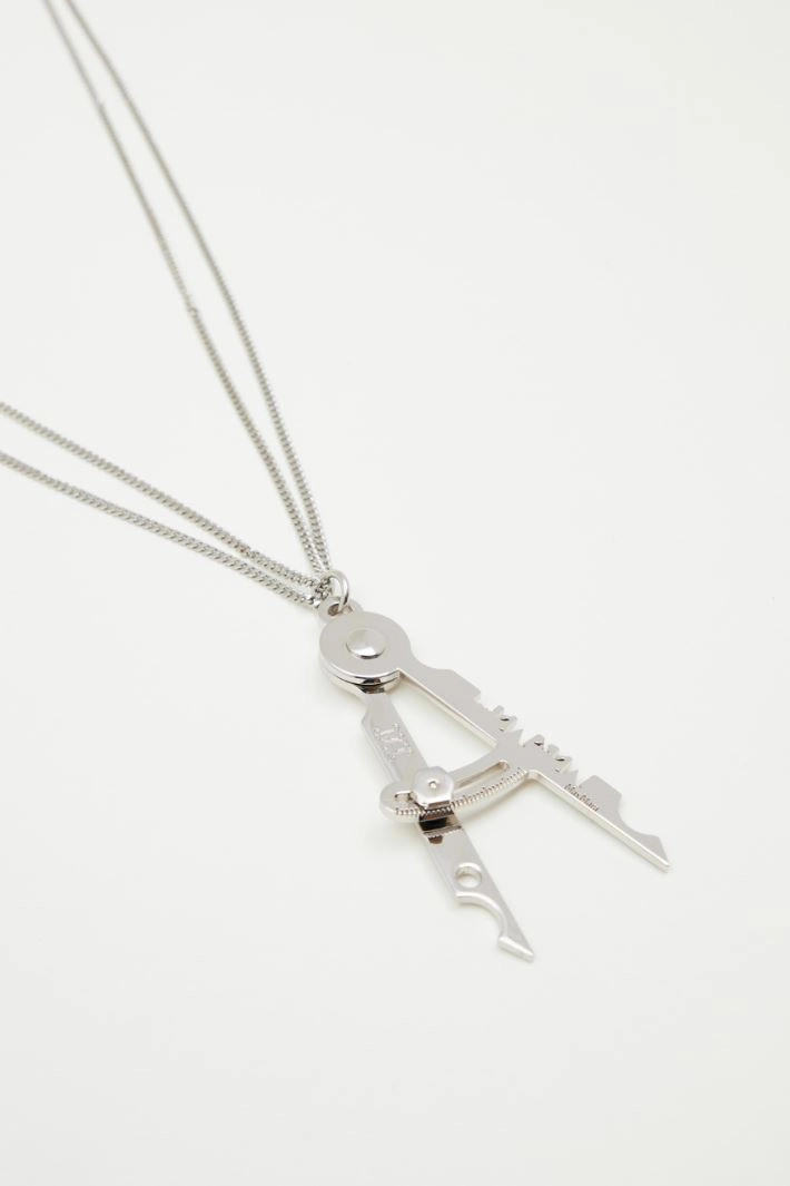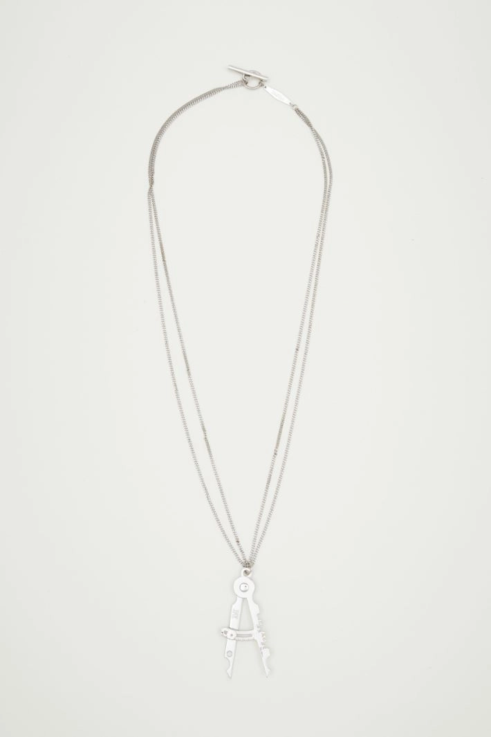 Long necklace with a double fine metal chain and a compass-shaped pendant, finished with an adjustable lobster clasp fastening.