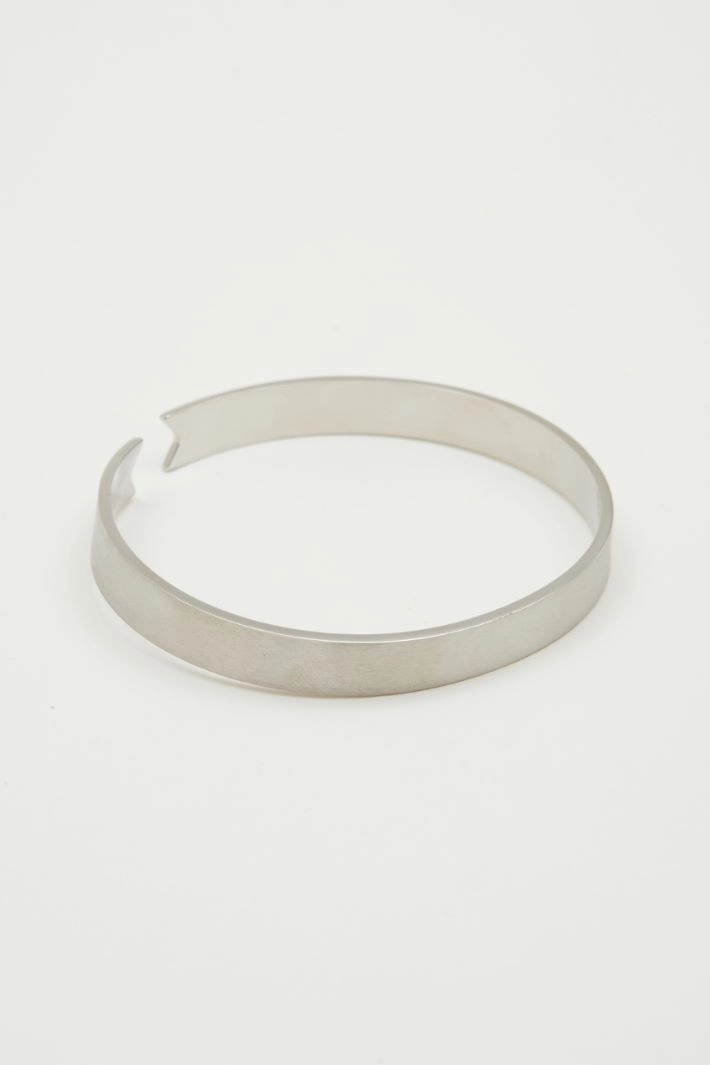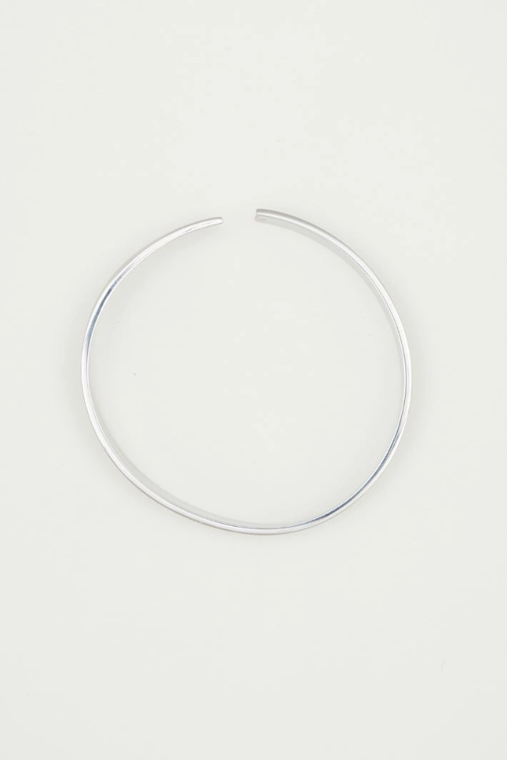 Bangle in satin-finish metal, featuring an openwork geometric motif. Snap fastening.