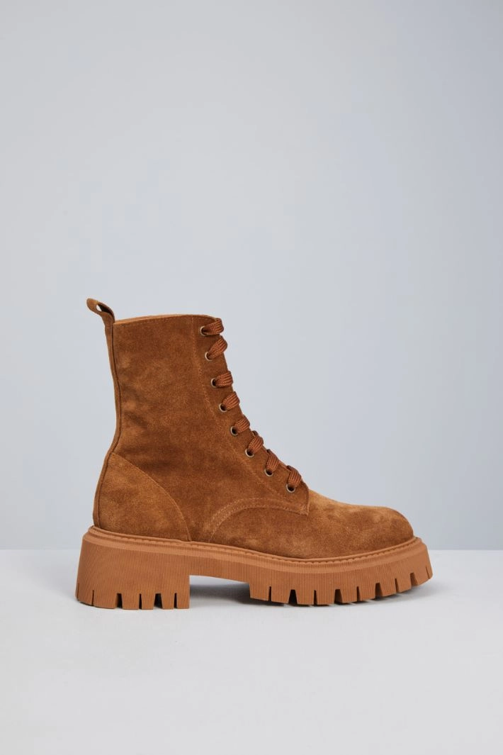 Combat boots in genuine suede-effect leather, with rounded toe and matching lace closure. Leather lining, rubber trekking sole.