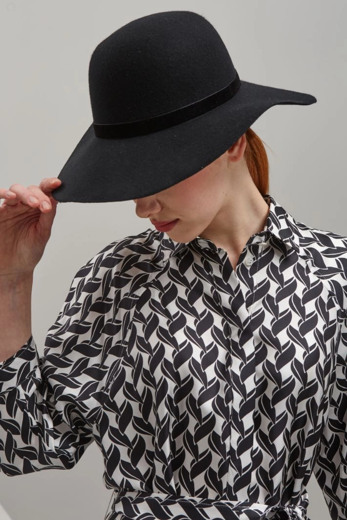 Wide-brimmed hat in pure wool felt with velvet ribbon and rounded dome.