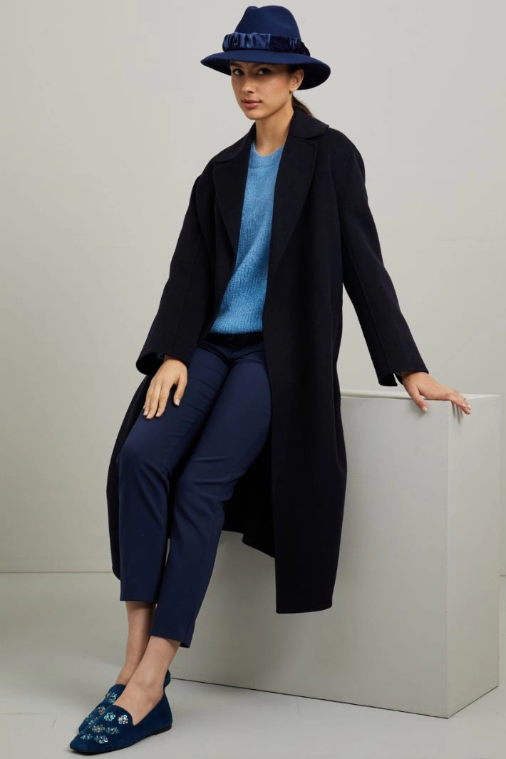 Fedora in pure wool felt, with curled velvet ribbon detail.