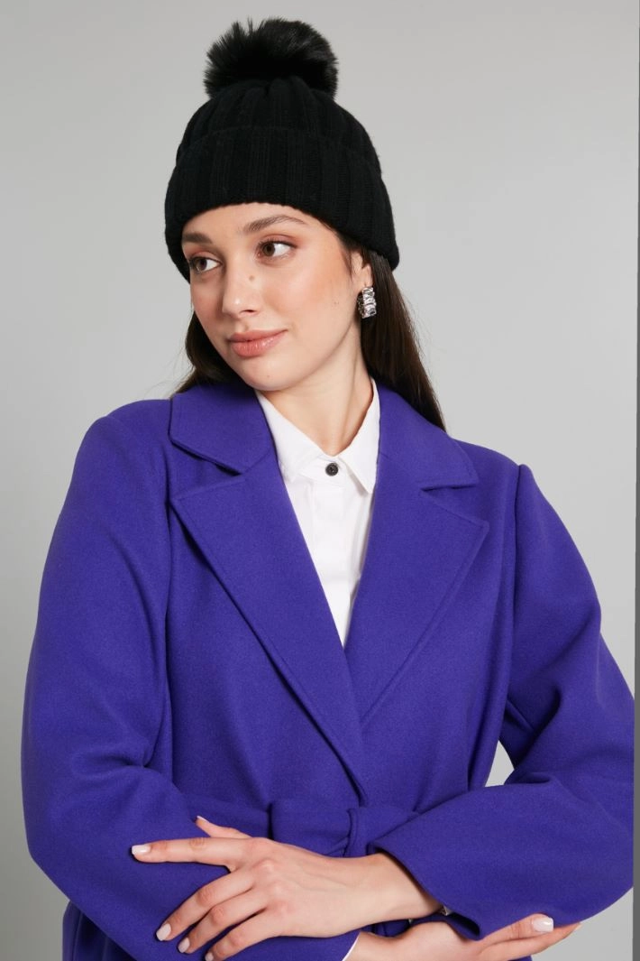 Beanie hat in wool, viscose and cashmere blend yarn, with ribbing, pom pom at the top and turned-up edge.